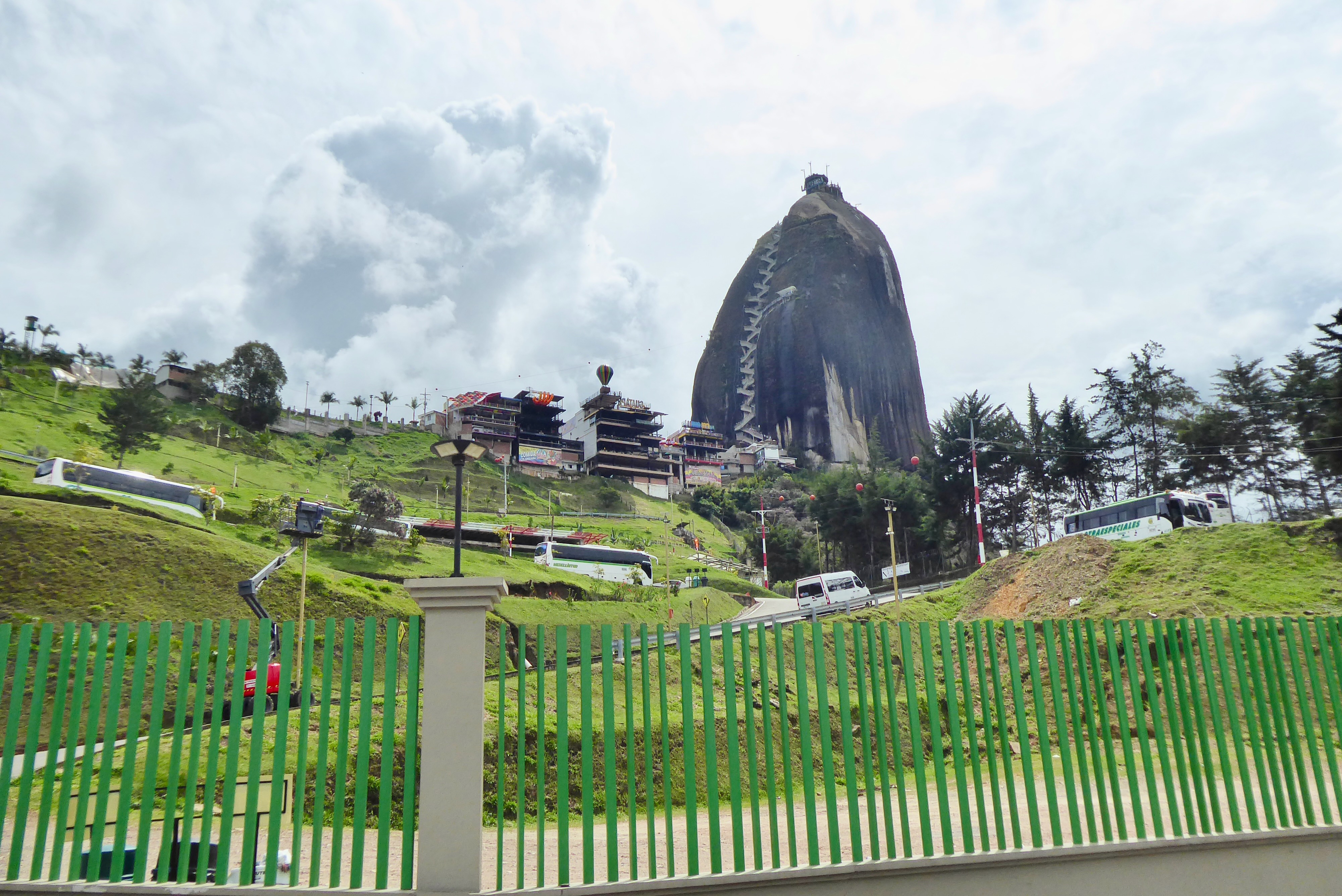 Another day trip from Carmen was to El Peñol. At 656 ft. tall this 65-million-year-old rock causes a gasp on first look. The way the road follows the irregular coastline, the rock appears in different places at different angles as you travel. There are 740 steps if you want to climb it and there is a well developed industry to buy things at the foot and the crest of the mountain.