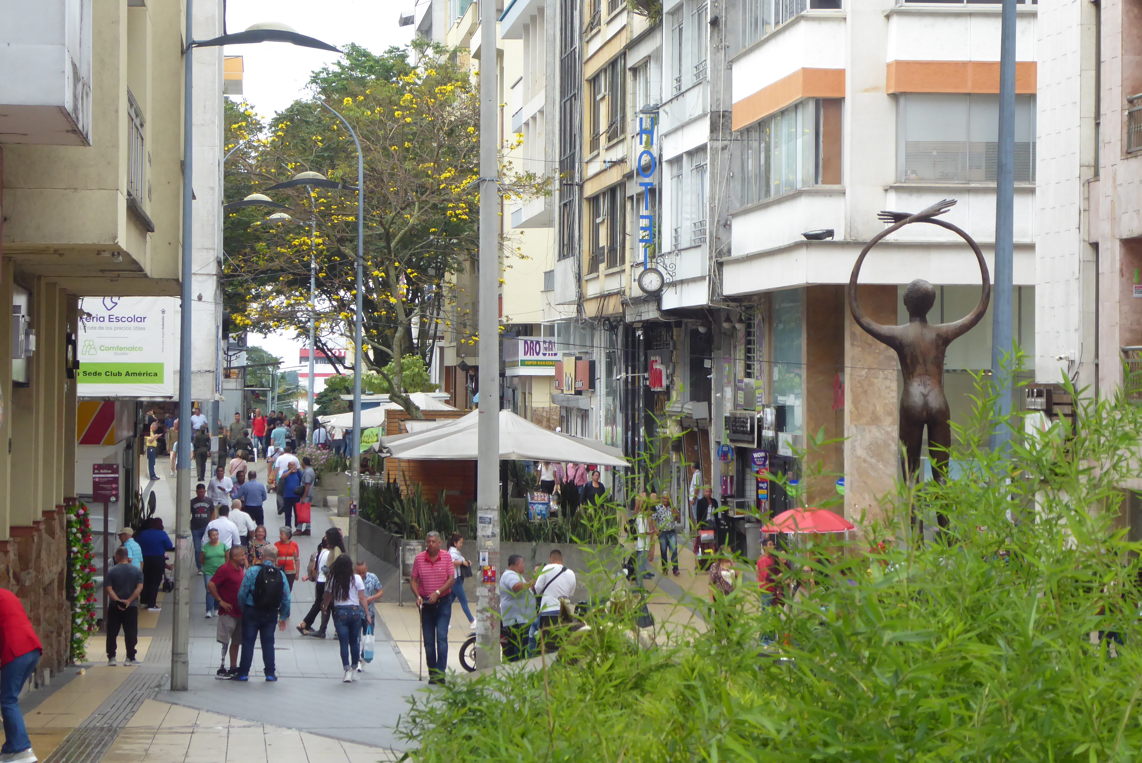 Downtown Armenia has a couple of wide walking streets. These are pleasant streets with seating and sculptures along the way. In between the flat streets are the steep streets that remind you that you have left the rolling hills south of Medellin and are now in the mountainous region of Eje Cafetero - the coffee area.