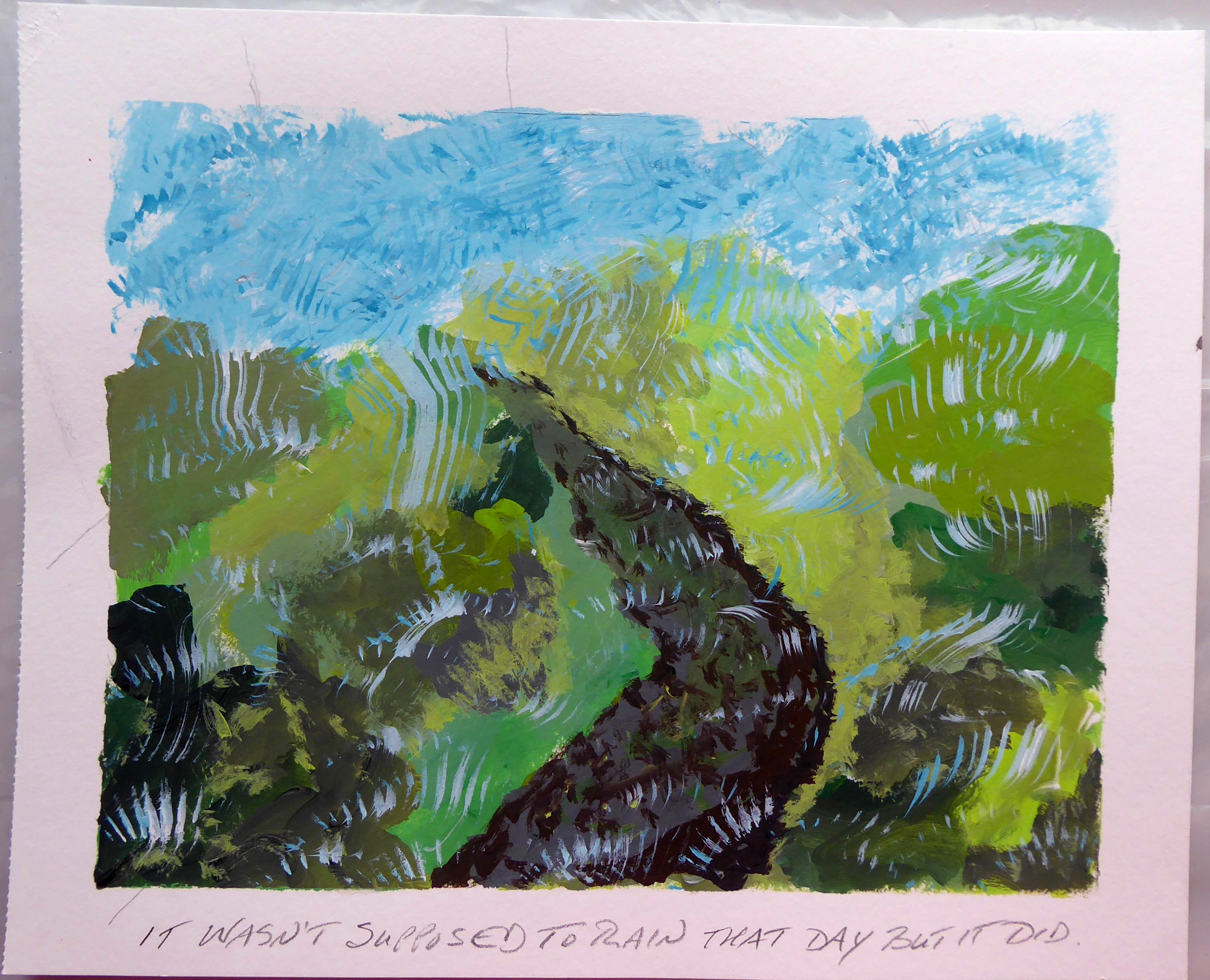 It Wasn't Supposed to Rain That Day But It Did. Se Suponía Que No Iba a Llover Ese Día Pero Así Fue. Acrylic on paper 8 1/2 x 10 1/2 (21.5 x 26.5)