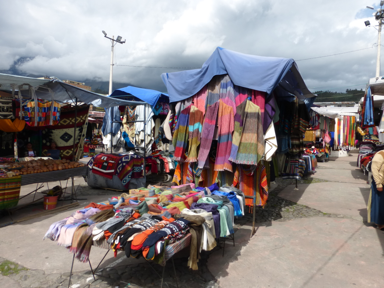 The famous Otavalo Market on a quiet Friday. It covers a couple of square blocks every day, but on Saturday it expands to the streets for several blocks in all directions.