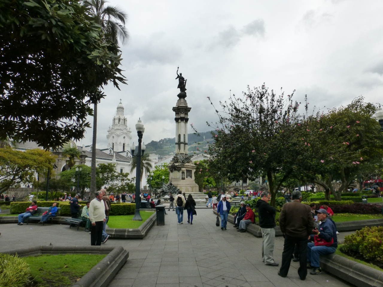 Independence Square is a popular hang out. In the center is the monument to the heroes of the August 10 fight for independence from Spain.