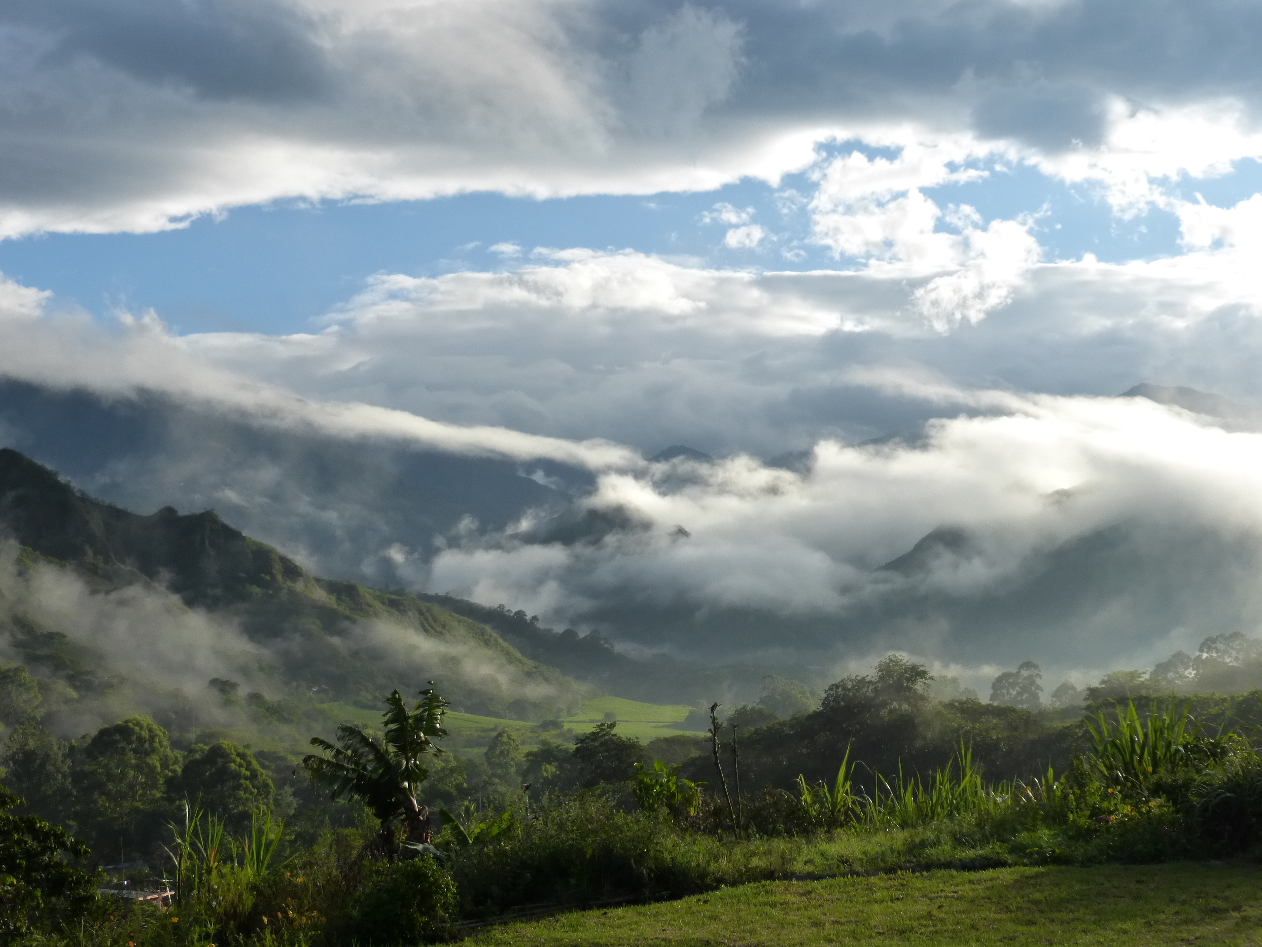 The green fields are sugar cane, the primary crop of this valley.