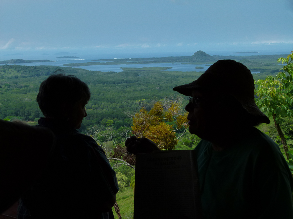 Dr. Graciela silhouetted against Chiriqui Bay