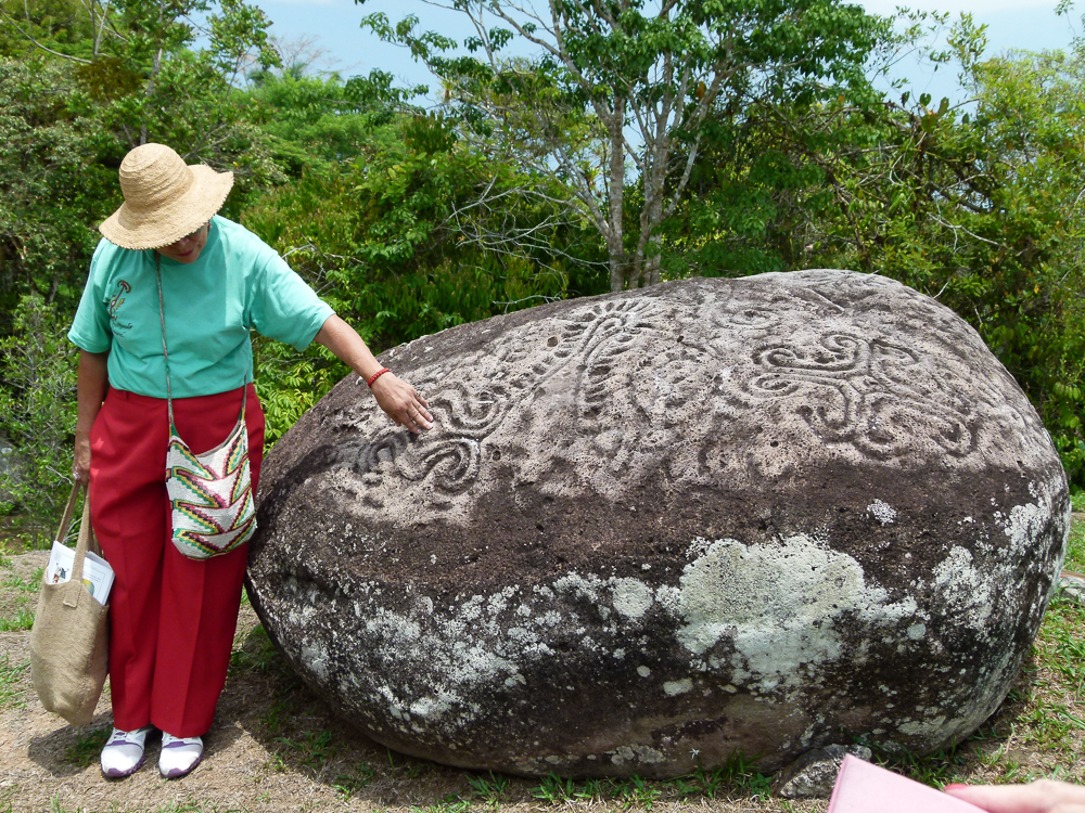 Dr. Graciela showing the hole where some men 'impregnate' the rock as part of their ritual