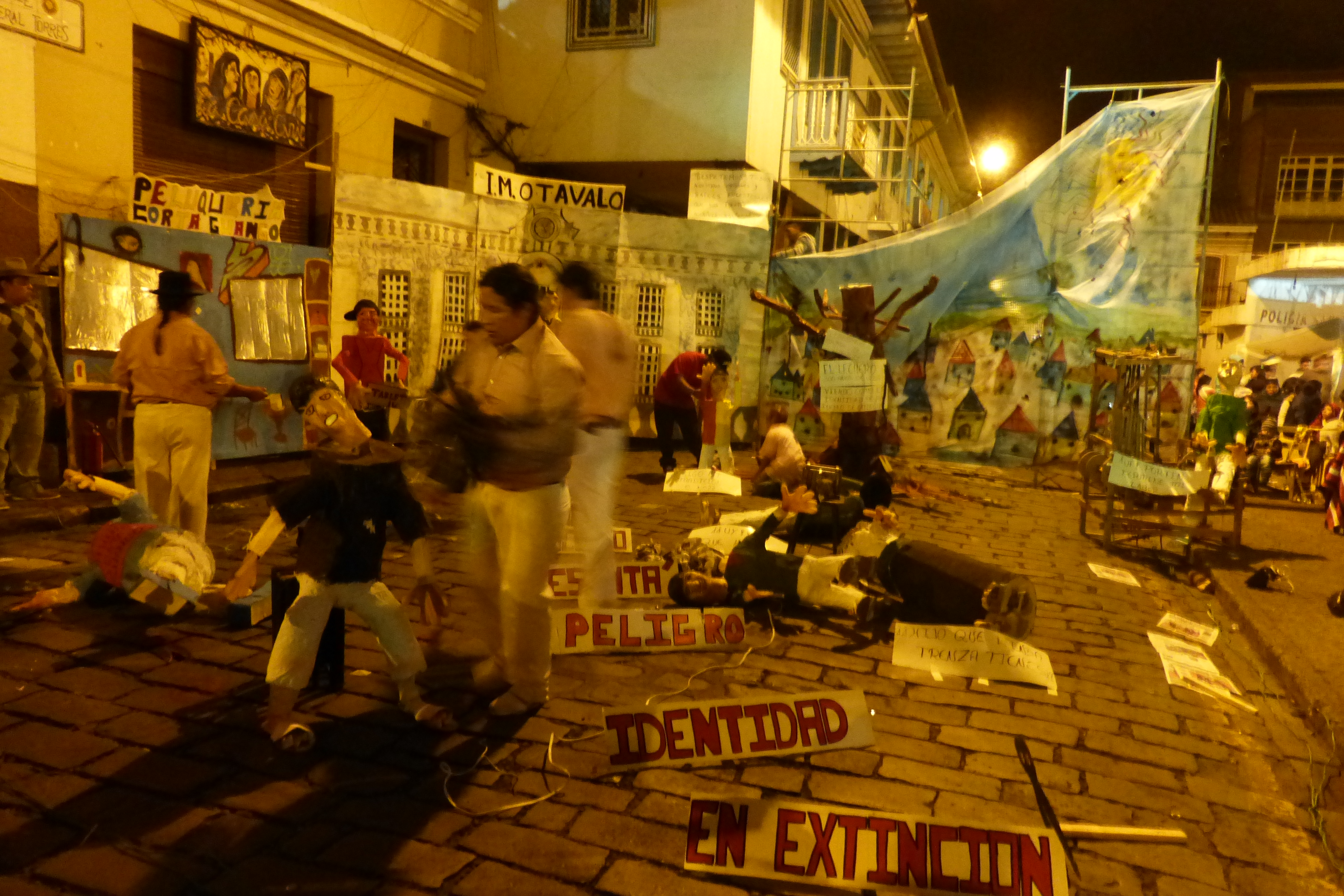 This was the Otovalo display. We got here too late to see the whole exhibit but it looks like it was addressing the concerns of the indigenous people having to do with identity and extinction of their culture. In the background you can see a small loom that was used in the display as being signficant of their culture.