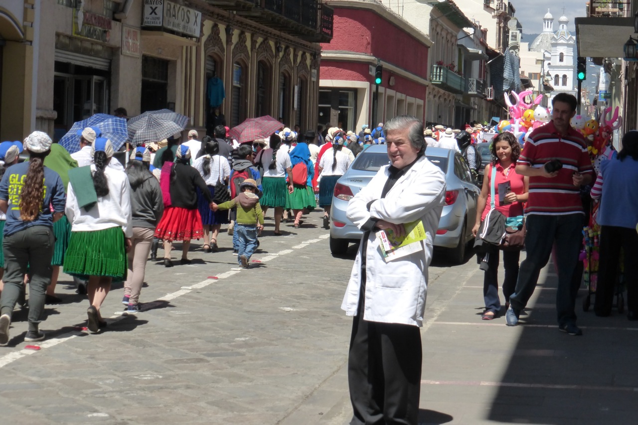 Many shop keepers, including this pharmacist, came out to see the parade.