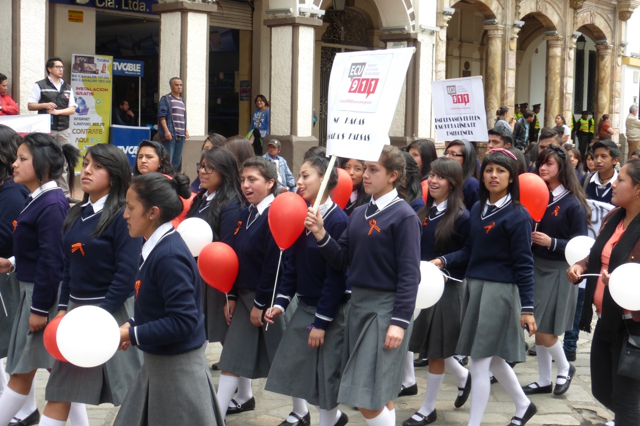 Parades are pretty common here but this one really surprised me. I found out that it was a parade for the 911 Emergency Service. They actually had groups of school kids in their uniforms parading down the main streets in town all the way to Parque Calderdon. One of the bystanders told me it was to bring attention to the proper use of the emergency service phone numbers.