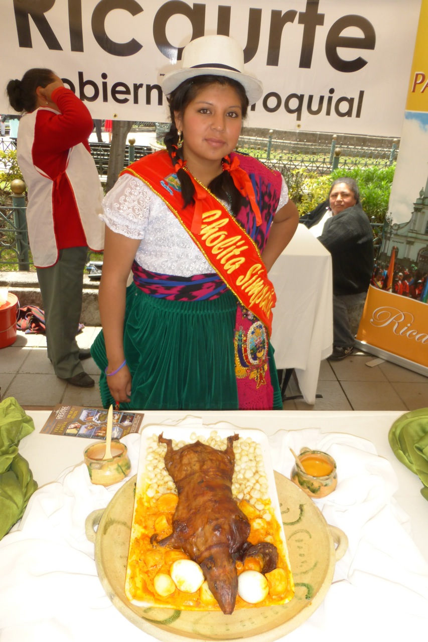 This lovely young girl is from Ricaurte which is a small town near Cuenca. Her title of 'Cholita' translates appropriately as 'lovely Indian girl'.