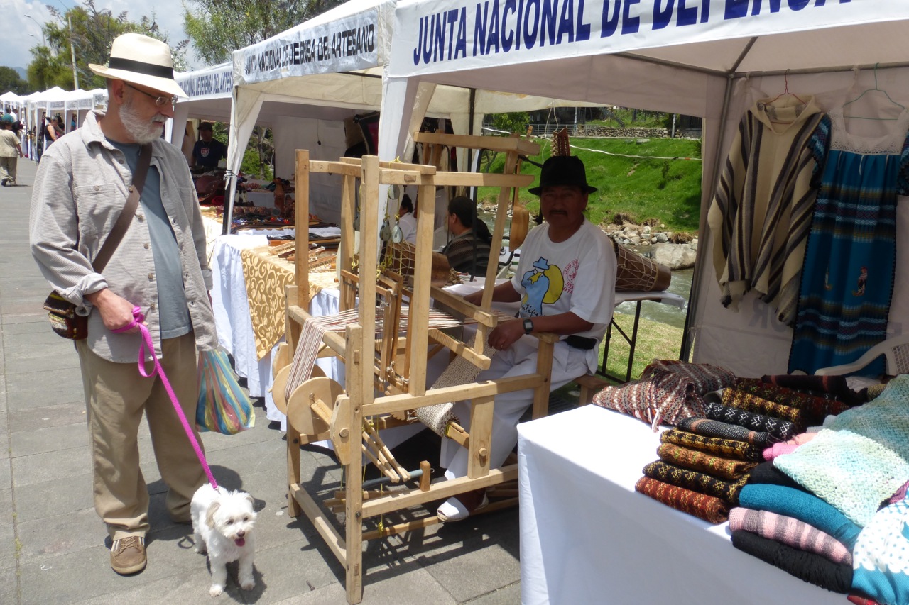 Luis Morales showed us how he weaves scarves on this compact loom. I plan to contact him after the holidays because he said he can help me find high quality cotton thread for my weaving.