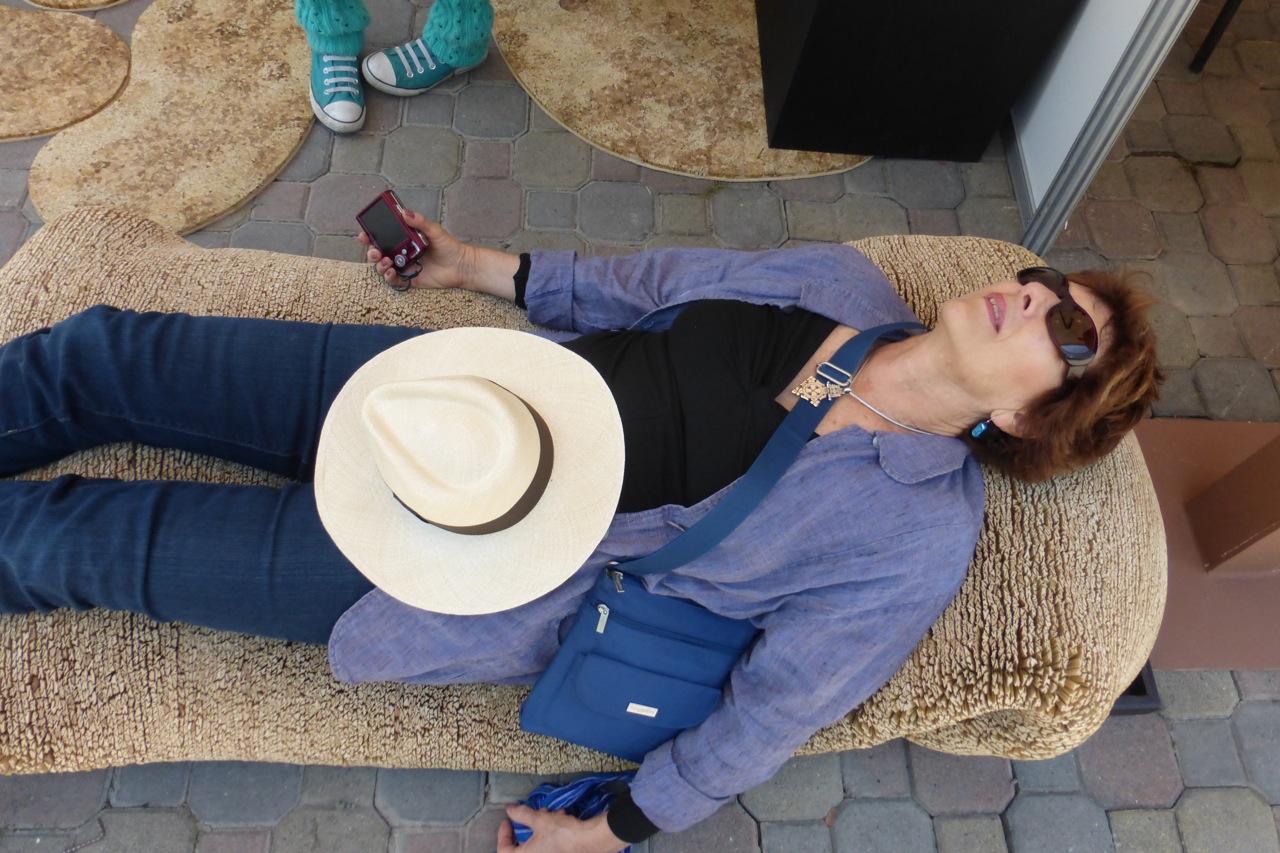 Ginger tried out the lounge chair made of some natural fibers. It reminded me of some water hyacinth weavings I have seen before.