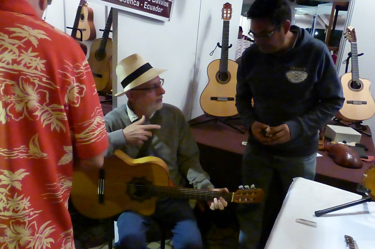 Winn has decided to buy this guitar made by Jesus Ortega. The guy in the hawaiian shirt is his friend Gene who has always been with Winn through the years whenever he buys a new instrument.