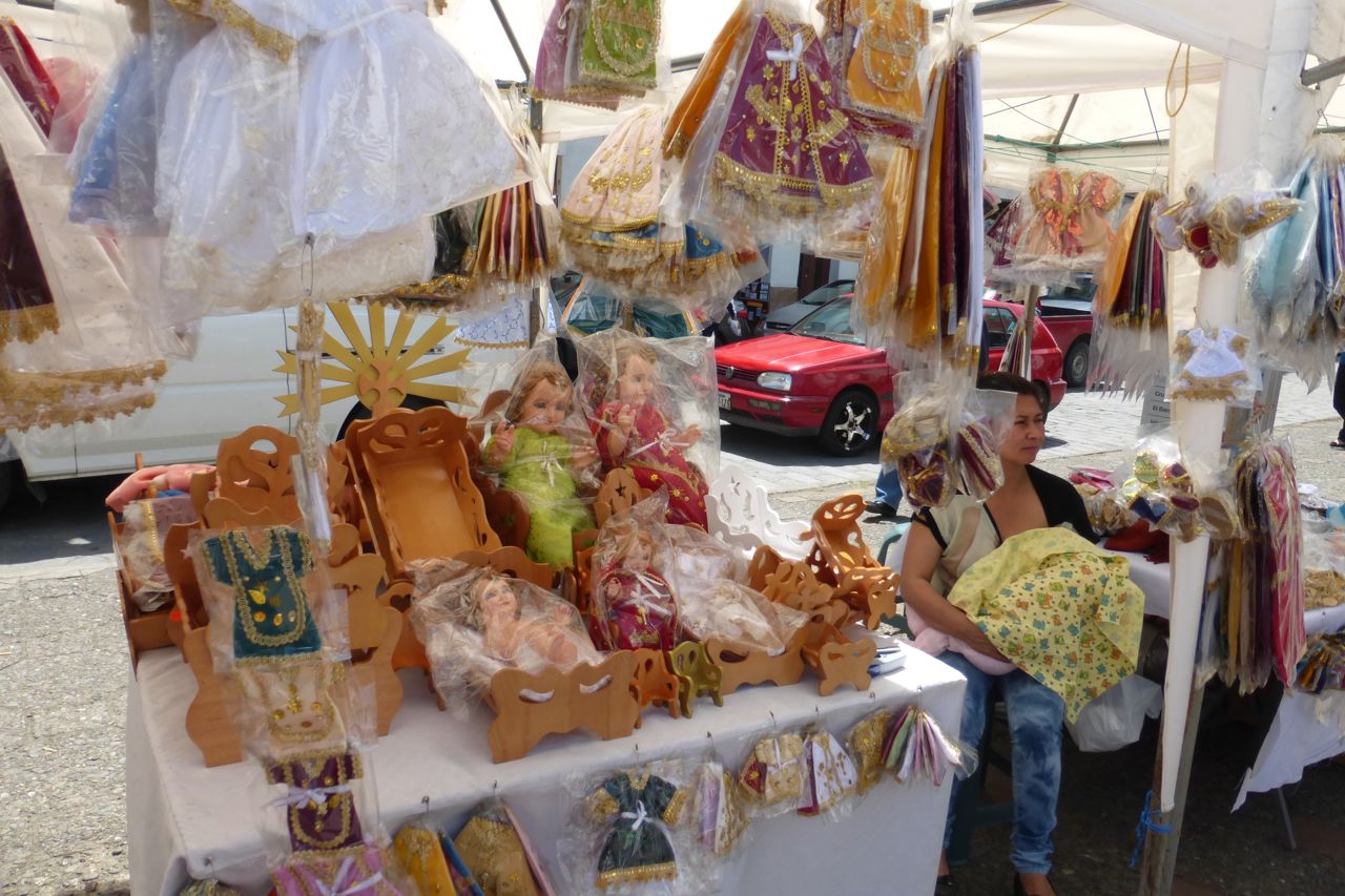 The Christ child doll, a hand-carved crib and hand-made clothes are for sale this time of year. Many households have their own manger scenes set up.