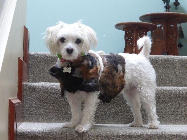 Jazz is modeling the short jacket I made for her out of alpaca felt.