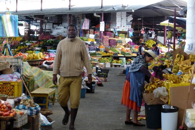 There are so many cultures represented here in Cuenca. I still don't know the names of the indigenous groups but I enjoy their distinctive outfits and hats. We don't see many black people around Cuenca so this extra tall fellow stood out as he strolled the market.