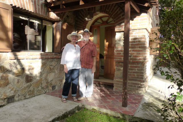 Totsie and Winn in front of our new apartment in downtown Cuenca. We have a beautiful courtyard and garden that is maintained for us. We are on the ground floor of a 4 story building next to the famous Escalinata stairway. Above us is the Wunderbar and various offices. We live 1/2 block from the Tomebamba River which we can see from the garden. Going down the Escalinata, we cross the river and are at the huge Parque de Madre and commercial area. Going up the stairway puts us on Calle Larga and about 5 blocks further north is the center of town. We love this location and are having fun becoming city people!