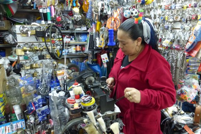 An impressive display in a miniscule shop of locks and keys. This woman was quite competent at copying all of our keys including the weird 4-sided one.