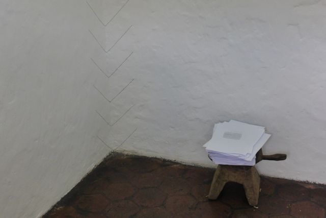 One of the Bienal exhibits was a small white room with pencil line arrows going down in this corner and up in another corner.