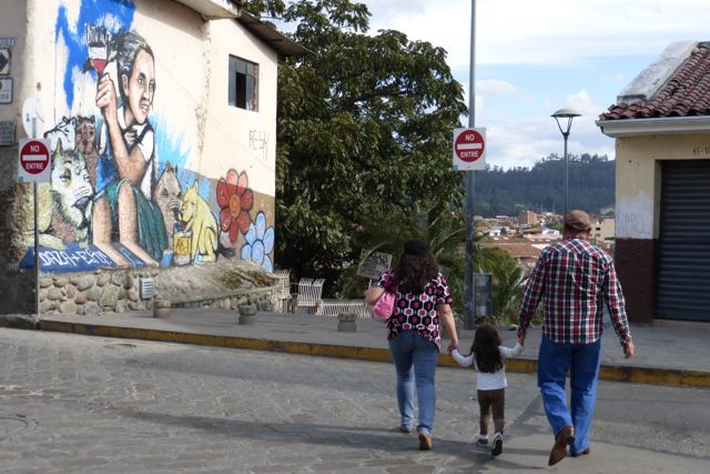 This family is headed for the stairway that goes down to Otorongo Plaza.