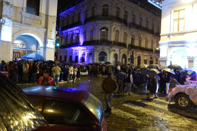 And even more people lining the streets next to the cathedral waiting for the procession to begin with a light mist falling.