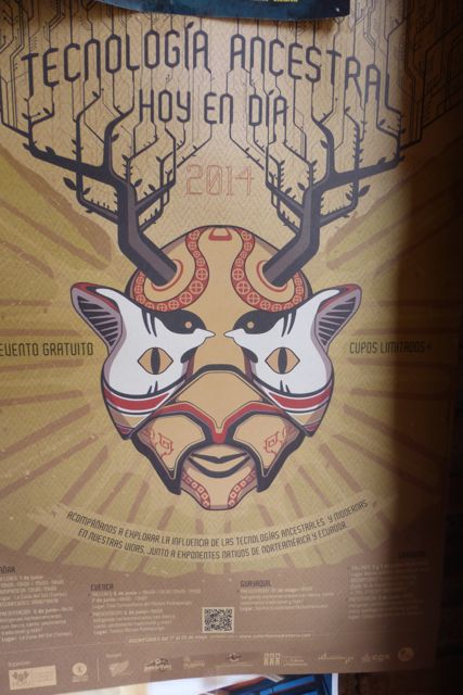 This beautiful poster was announcing a cultural exchange event between indigenous people from the U.S. and Ecuador having to do with Ancestral Technology Today.