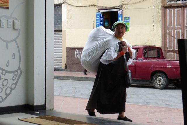 I don't know which indigenous group this woman comes from, but, like many others, she carries a load on her back very gracefully.