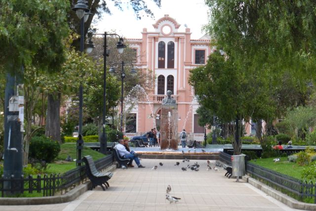 The park and fountain across from San Blas Church.