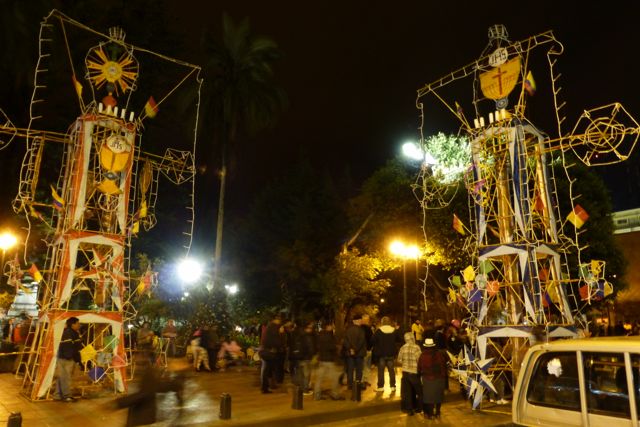 The castiles of fireworks are sponsored by the church, businesses and individuals. Sometimes there are multiple castiles in one night. This night there were two. Another night we saw three. This happens every night of the week long celebration.