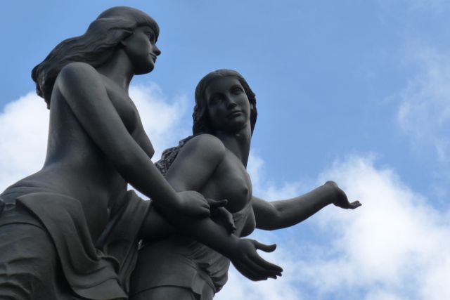 These are the ladies running across the top of Remigio Crespo Toral's monument. I think this one is saying 'I have no idea why we running bare breasted across this avenue but let's go.'