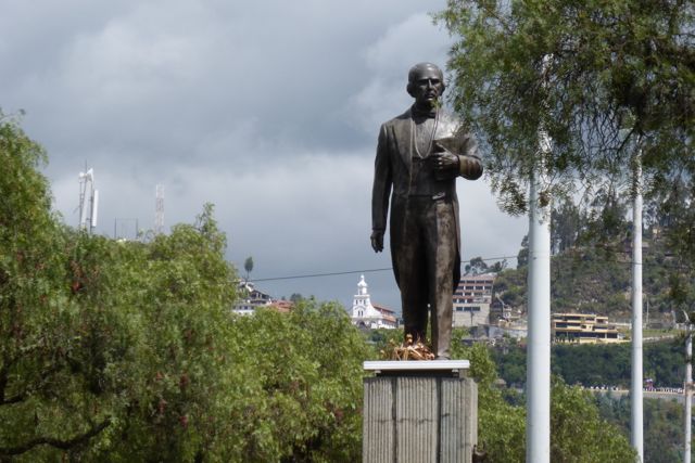 This is Benigno Malo. He was an attorney, politician, founder of the high school named after him and rector of the University of Cuenca. The white church in the background is the chapel at Mt. Turi which overlooks the city.