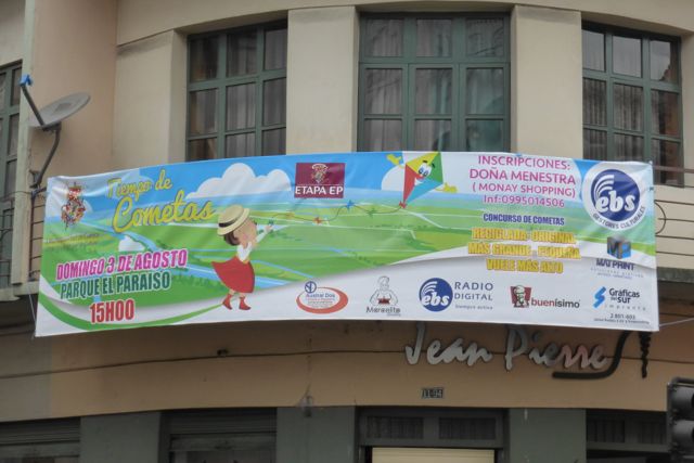 This sign says that there is going to be a Cometa (Kite) Festival at Parque Paraiso. Paradise Park is about a 25 minute walk from our house down river so we took Jazz with us.