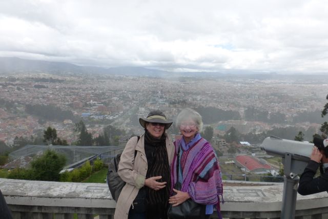 Our friend Teresa from Houston came to visit. Here we are on the top of Mt. Turi as the rain begins. One drop on the lens whitened my face and then we ran for the gift shop.