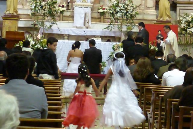 One night peeking into a church we found a wedding going on with two little girls running up and down the aisle during the ceremony.